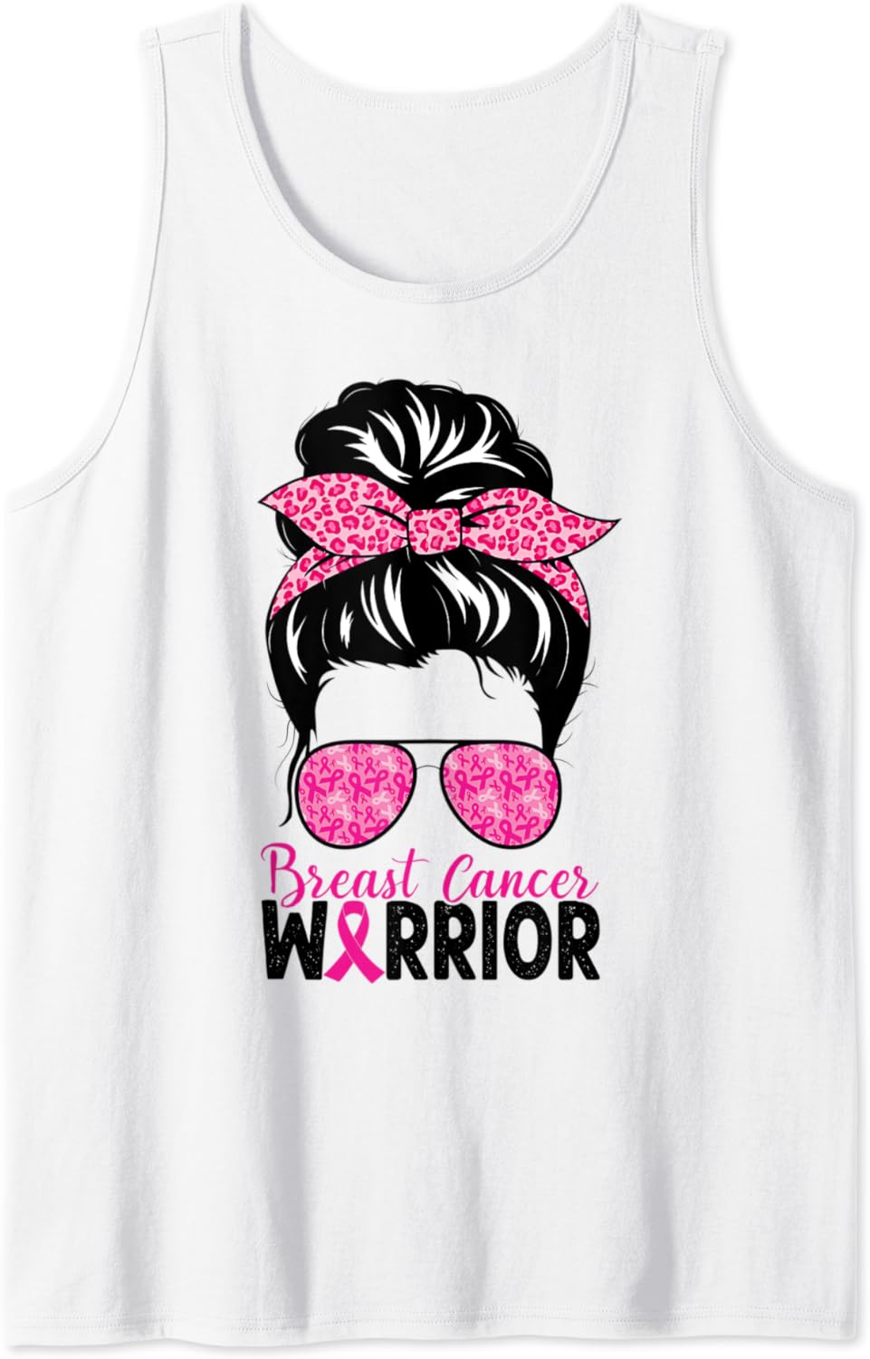 Amazon Com Breast Cancer Warrior Breast Cancer Awareness Messy Bun Hair Tank Top Clothing Shoes Jewelry