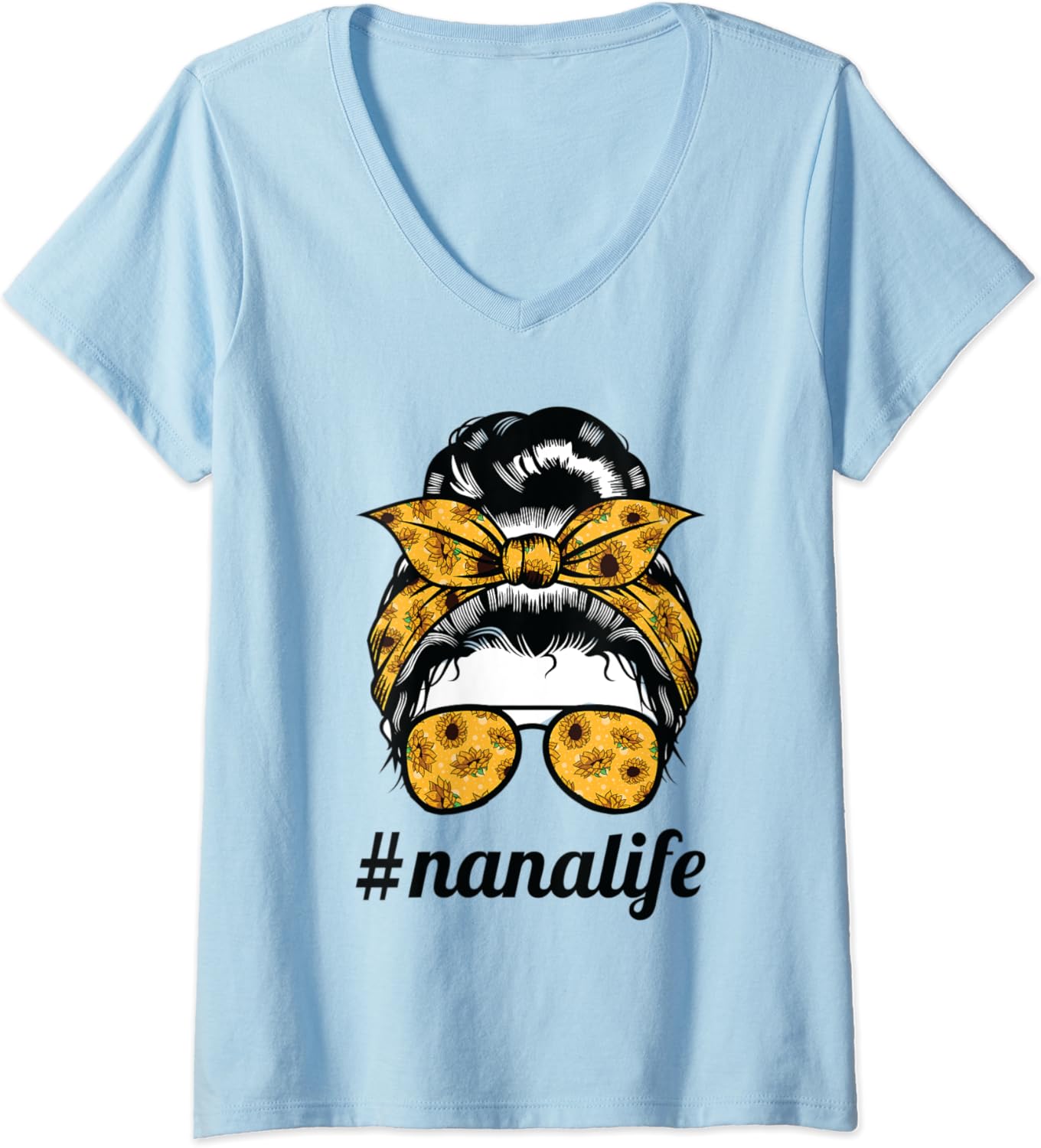 Amazon Com Womens Nanalife Messy Bun Nana V Neck T Shirt Clothing Shoes Jewelry